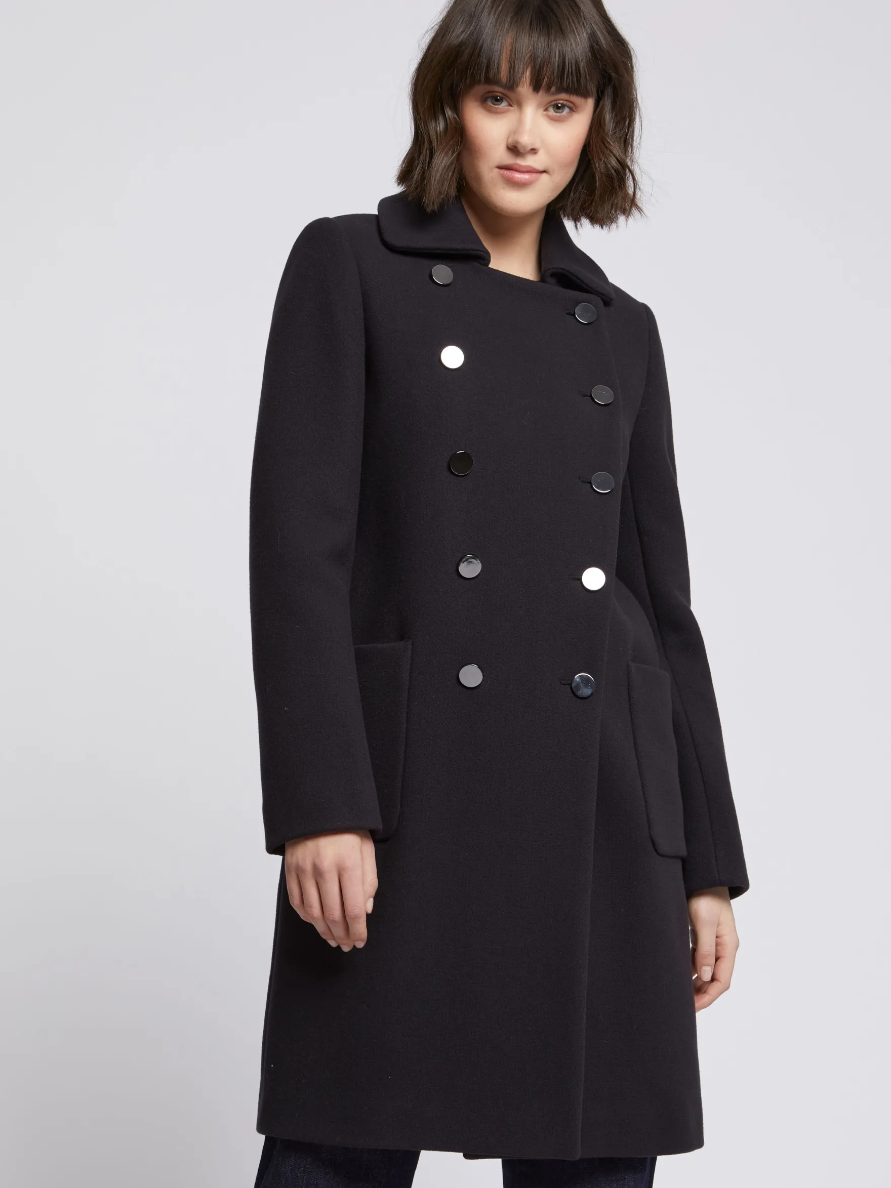 This Wool-Blend Winter Coat Has A Slightly Flared Mid-Length Cut, Two Large Side Patch Pockets And A Scoop Neck. The Double-Breasted Fastening Creates Structure. The Perfect Length, It Will Blend Seamlessly Into Your Winter Wardrobe.