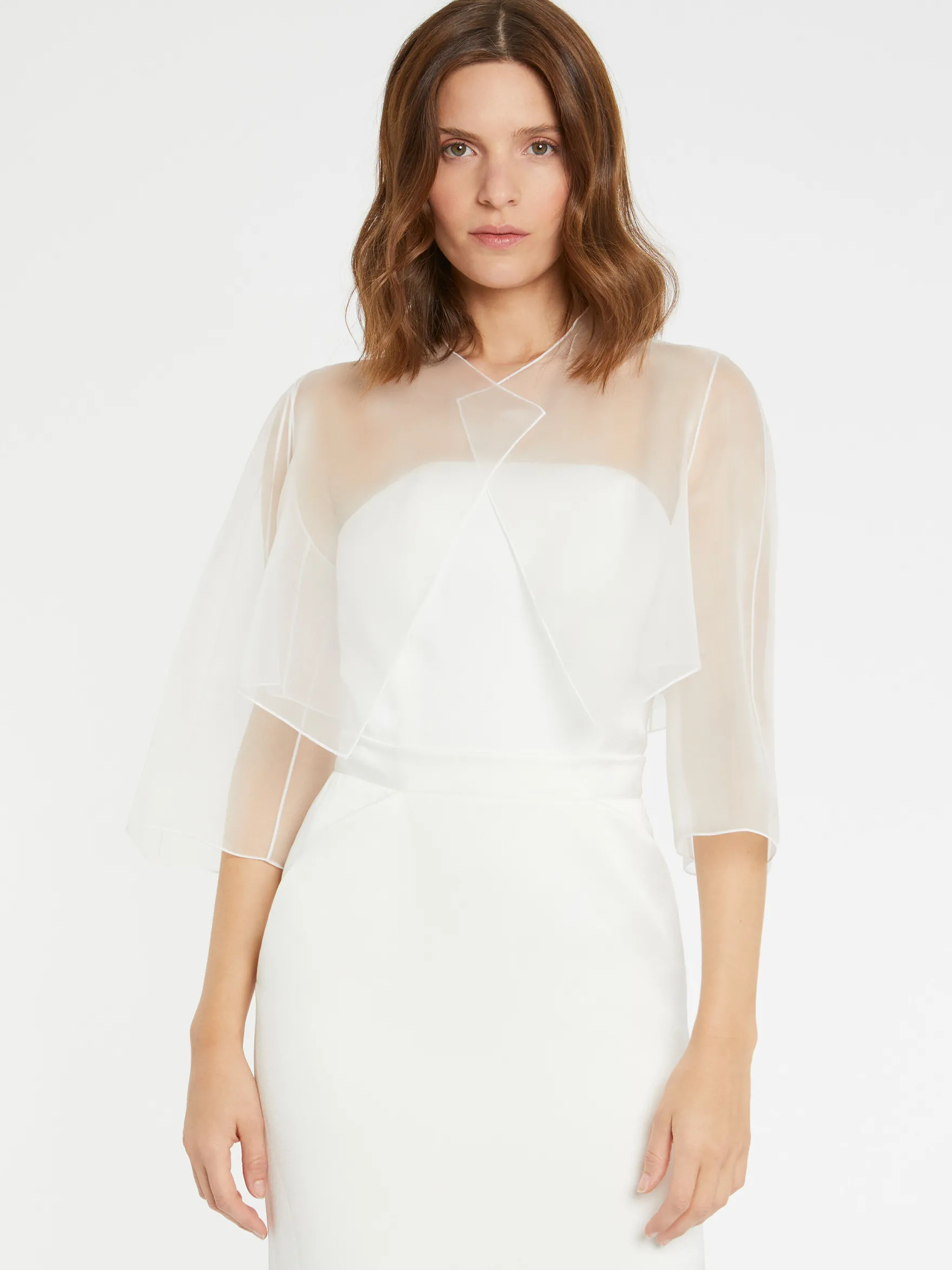 Organza Jacket Featuring 3/4-Length Sleeves And A Fluid Cut. Ties At The Bottom.